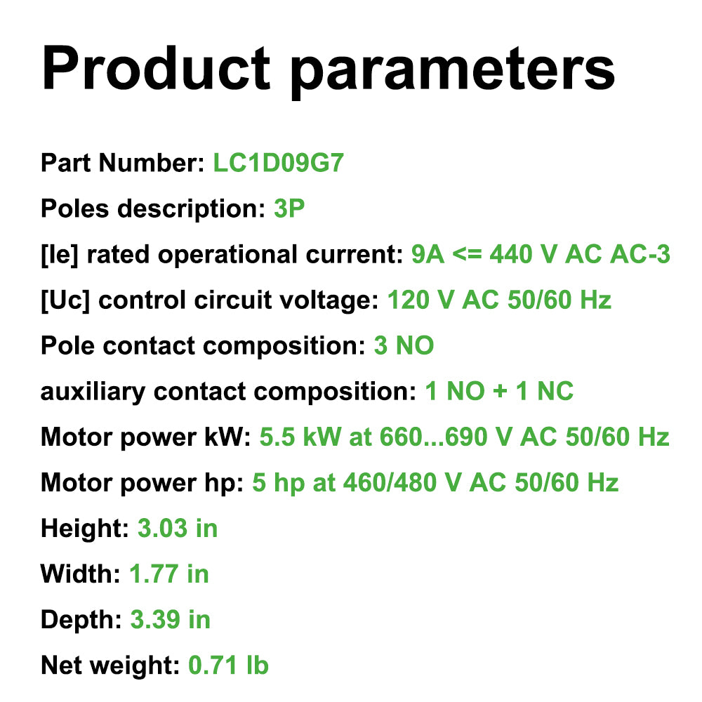 LC1D09G7 contactor 120V coil same as Schneider LC1D09G7 9A 3P 3NO AC
